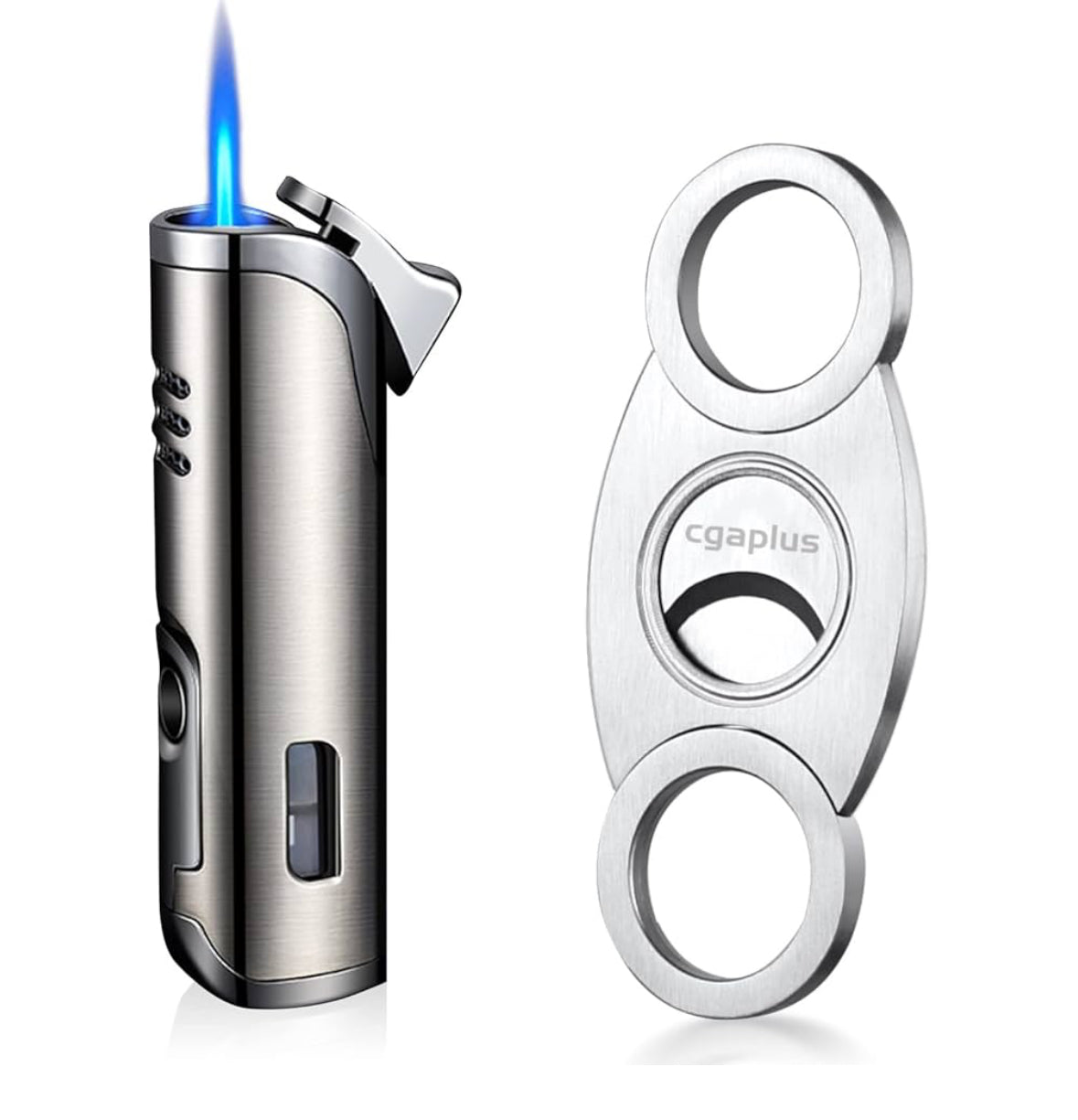This expertly crafted Gold and Silver Set comes with a Cigar Lighters and Cutter, providing the ultimate convenience for cigar enthusiasts. Made from high-quality materials, these tools offer precision and ease for lighting and cutting cigars. Perfect for those seeking a refined and luxurious experience.