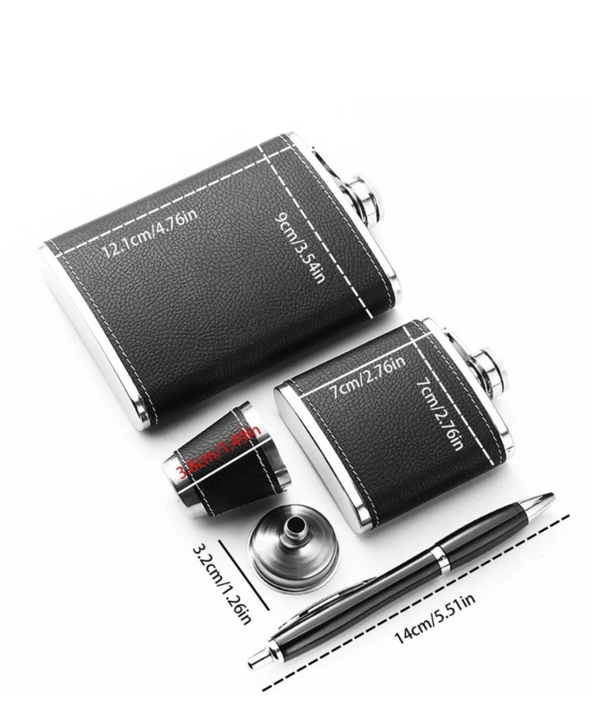 Este juego portátil de 2 botellas con estuche para exteriores es perfecto para acampar. Incluye una petaca de acero inoxidable de 8 oz y 3 oz con estuche, vaso de chupito, embudo, bolígrafo y una bonita caja roja de regalo. Diseñado por expertos para mayor comodidad y disfrute.